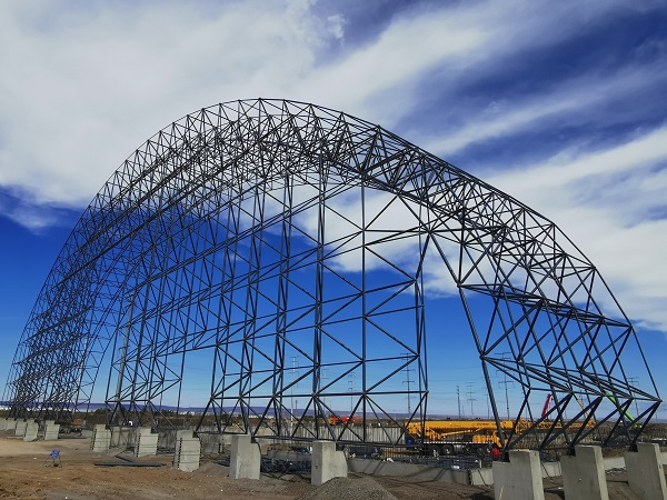 内蒙古京能集宁热电二期项目条形煤场钢网架顺利合拢